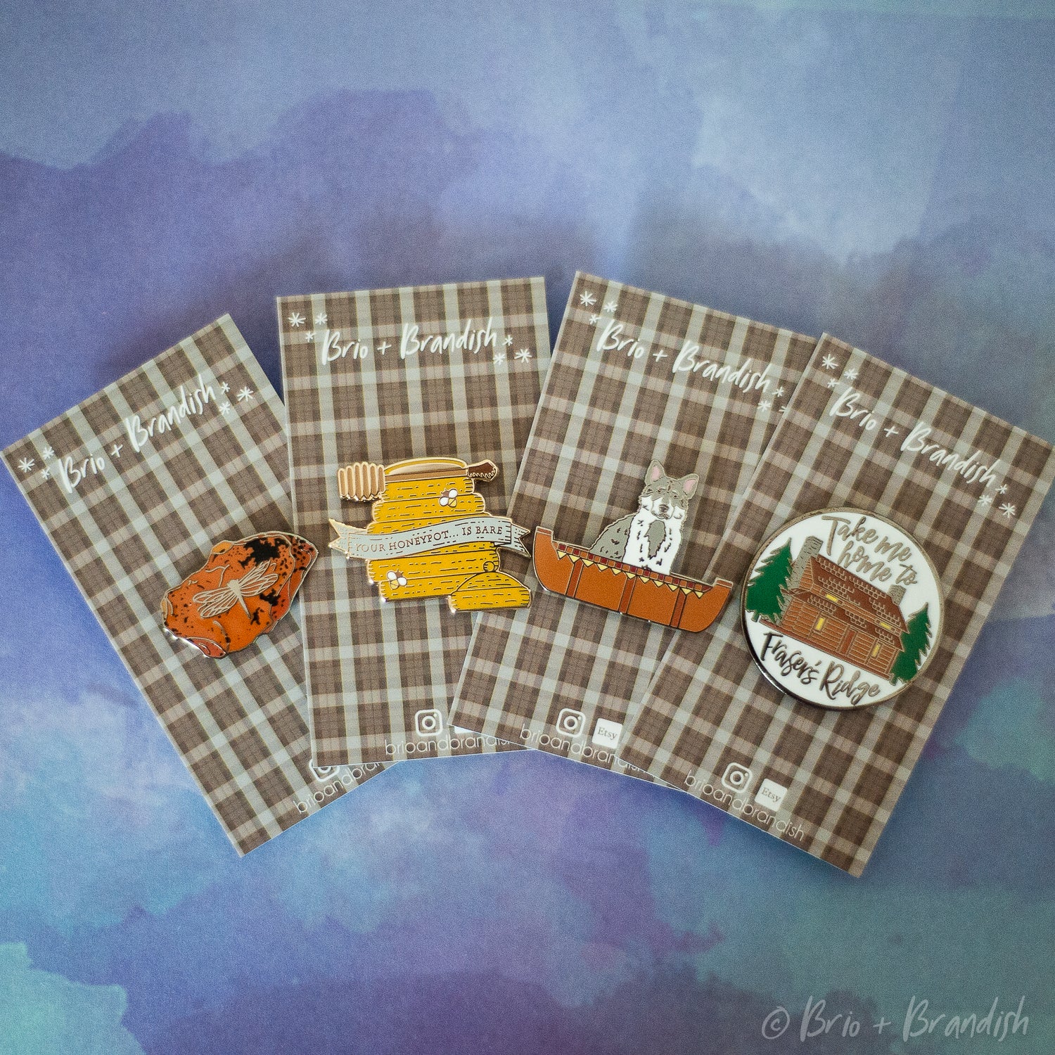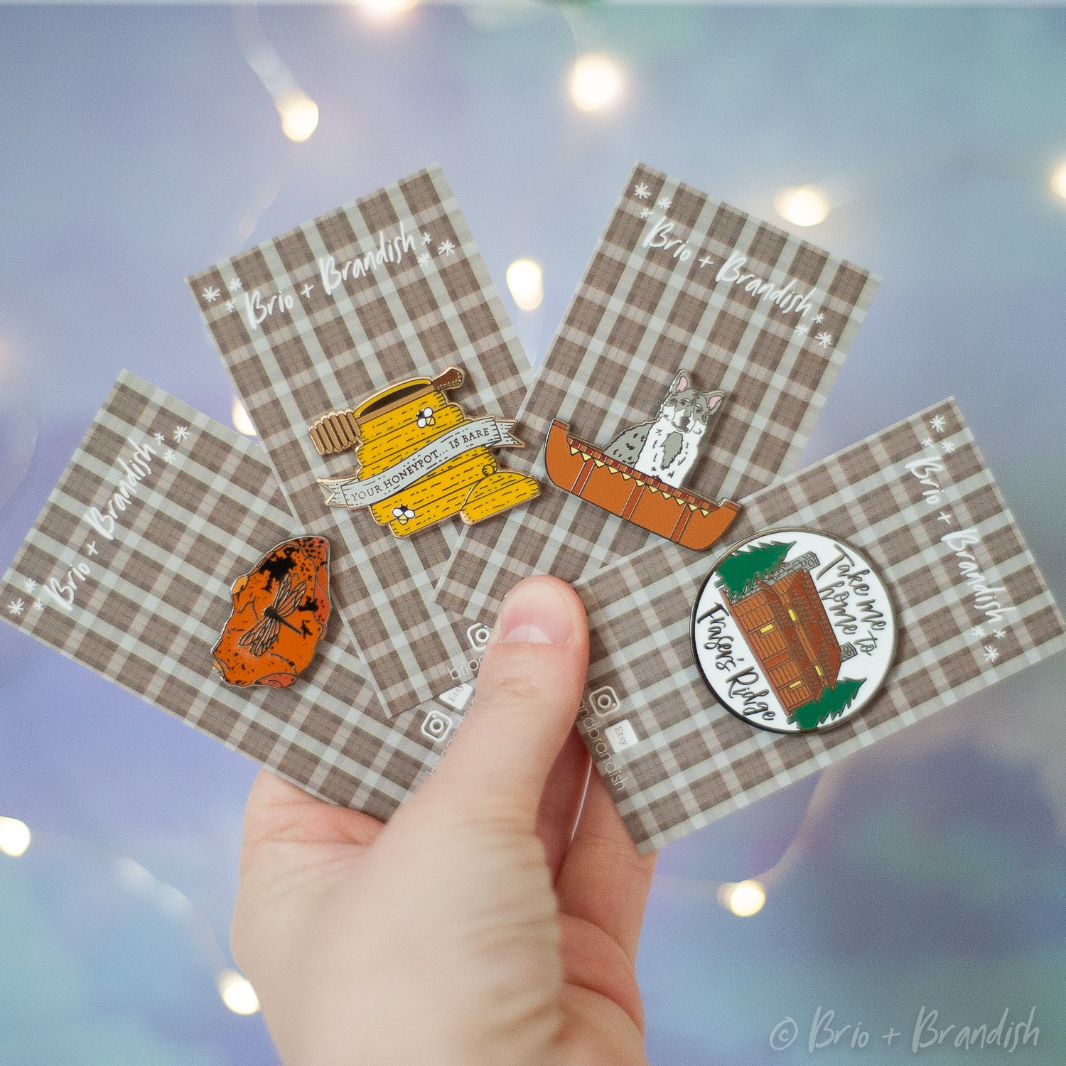 If you are a serious Outlander Sassenach (obbsessanach!) or fanatic, you will definitely want to get this full set of 4 pins for my second series of Outlander designs! In this pin set you will get the following pins: Honeypot, Fraser's Ridge, Dragonfly in Amber, and Rollo.
