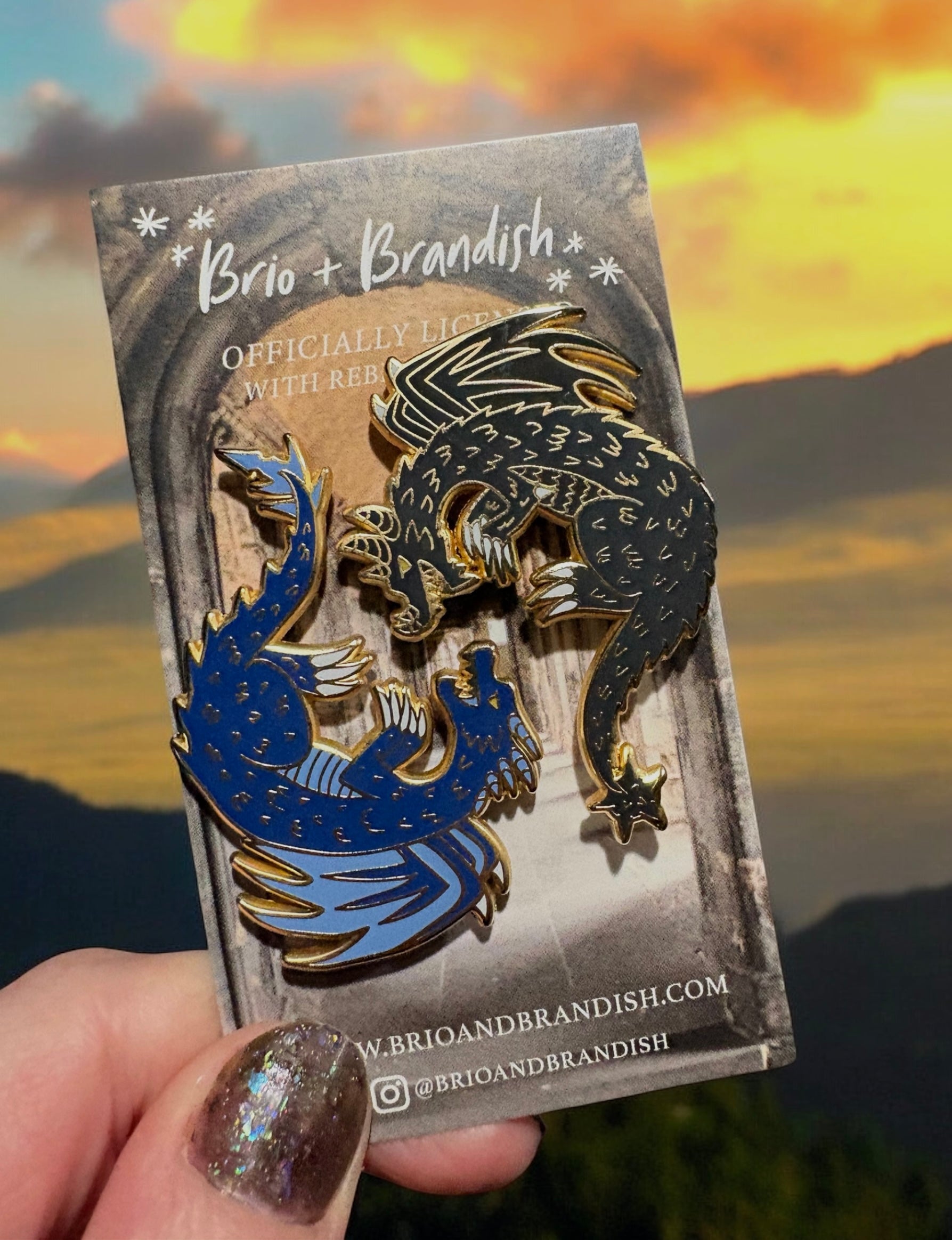 This listing is for 2 (two) enamel pins - one of Tairn and one of Andarna. These pins feature gold plating and various hard enamel colors, polished to a high finish.
